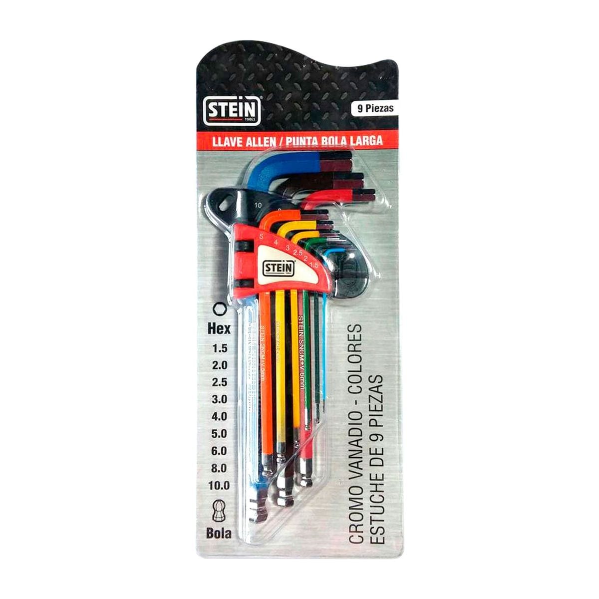 INBUSSLEUTELSET STEIN LANG KOGELKOP CR-V 9 STUKS KLEUREN