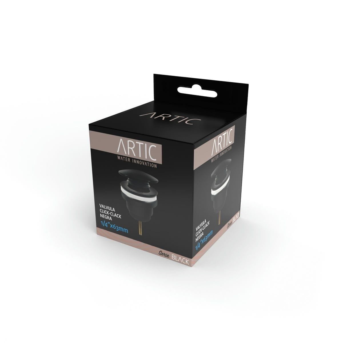 Click-Clack Artic messing klep met zwarte afwerking.